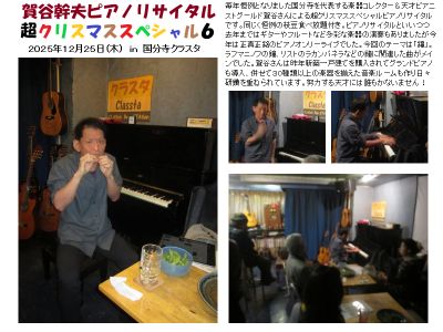 イベント・その他紹介 (2025/12/15) ピアノフリーコンサート九代目ホストにくまたろうさん。